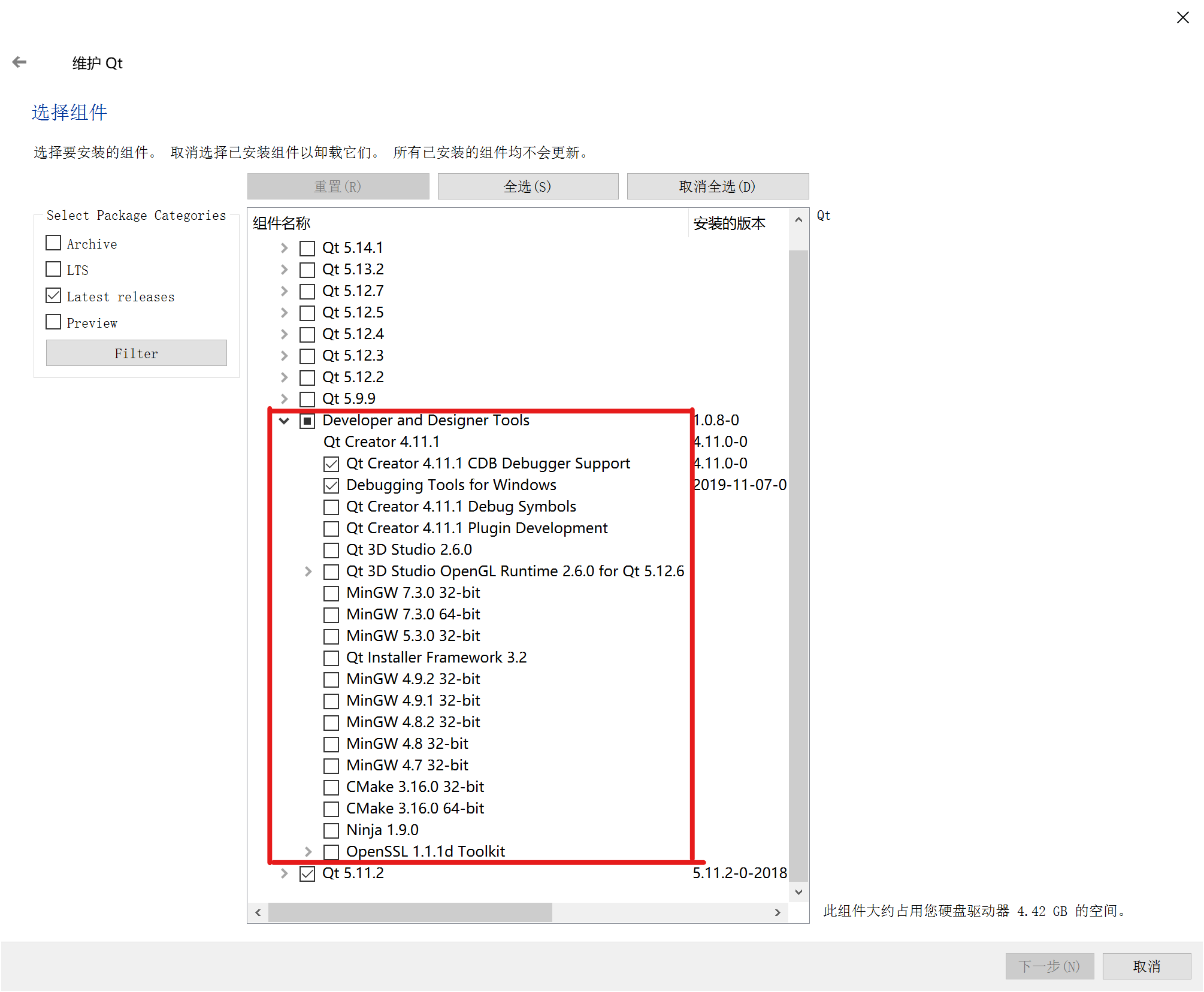 当然,如果你不准备进行 Debug 环境的配置,那么其实可以只安装一个 Qt Creator 等相关工具。 开发的时候直接使用 OSGeo4W 安装的 Qt 库进行开发。