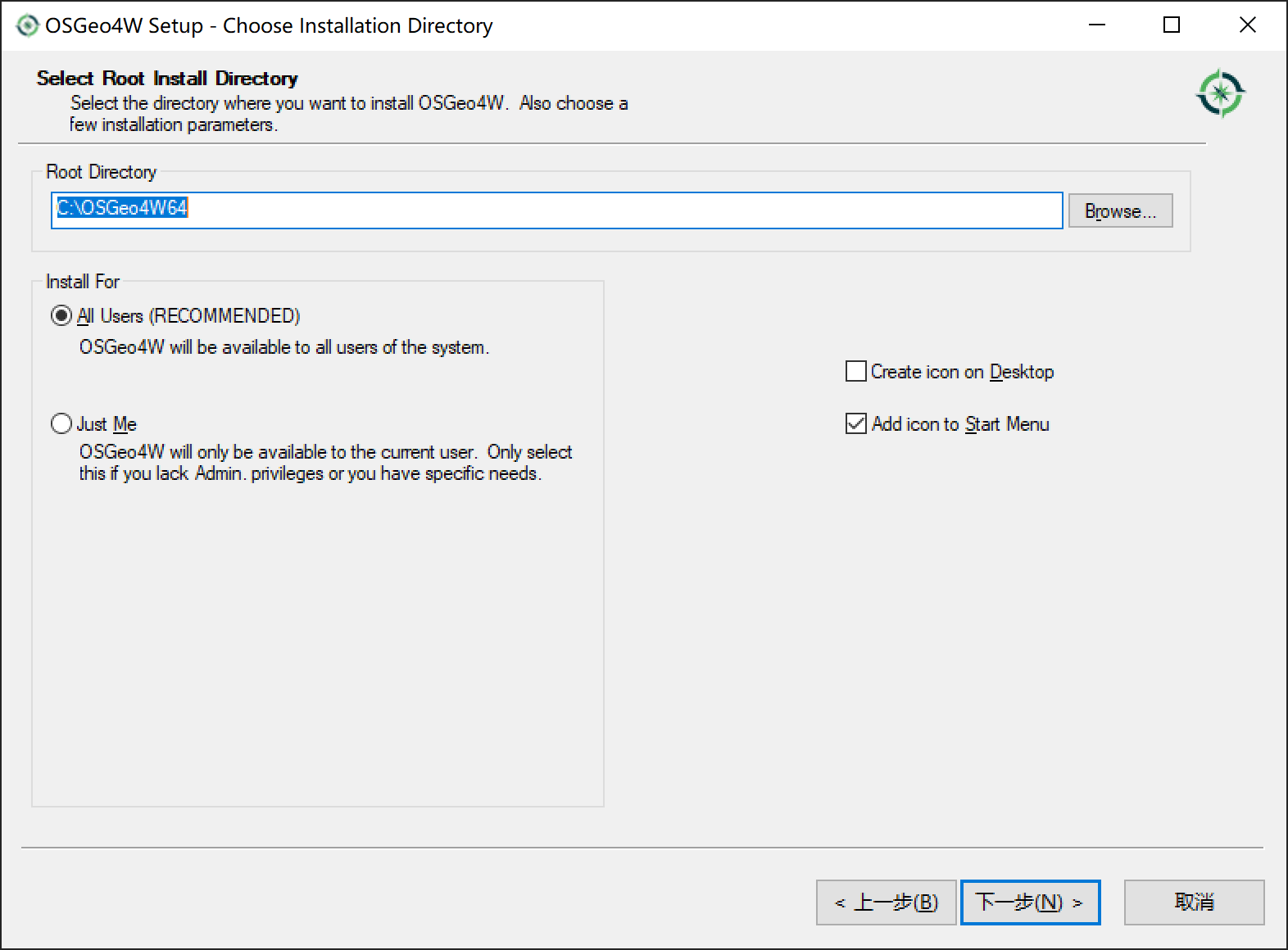 在 OSGeo4W 官网下载安装程序后,即可进行安装。